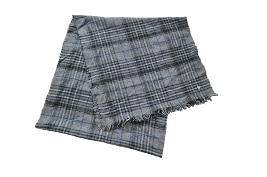 Kaschmir Schal in Grau mit Tartanmuster und goldenen Reparaturen