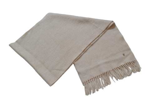 Kaschmir Wolle Schal Cremeweis mit goldenen Reparaturen