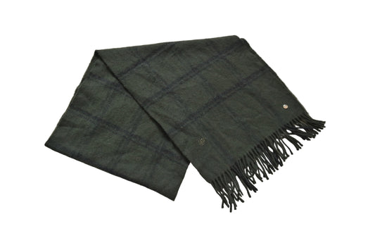 Kaschmir Schal Dunkelgrün mit Tartanmuster und goldenen Reparaturen