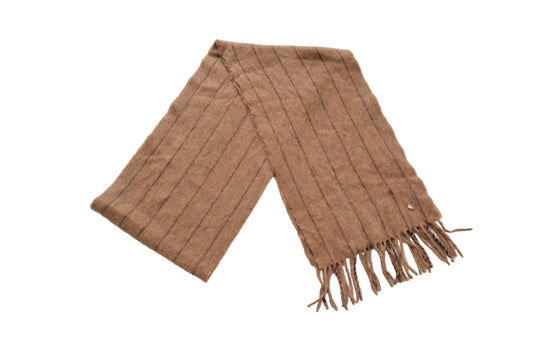 Kaschmir Schal Camel Hellbraun mit Streifen und goldenen Reparaturen