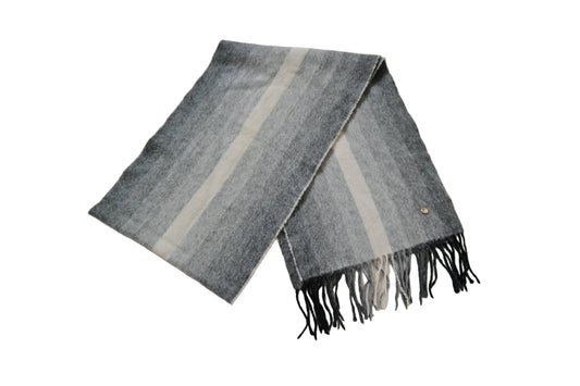Kaschmir Schal Grau gestreift mit goldenen Reparaturen