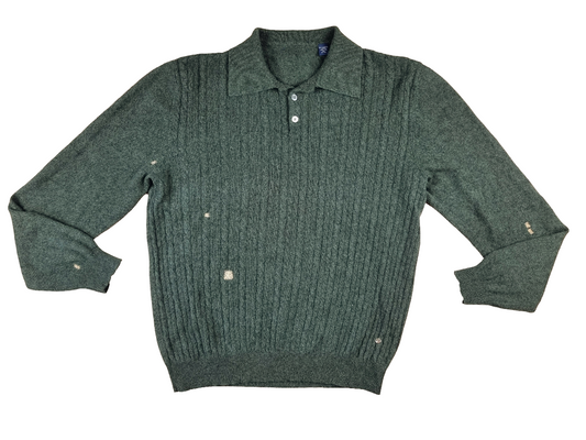 Durch die Reparatur mit goldenem Faden wird die Schönheit in den Unvollkommenheiten hervorgehoben und das Kleidungsstück erhält einen besonderen, individuellen Charakter. Nachhaltigkeit trifft auf Luxus, denn anstatt Textilabfälle zu produzieren, schenken wir diesen Pullovern ein zweites Leben.