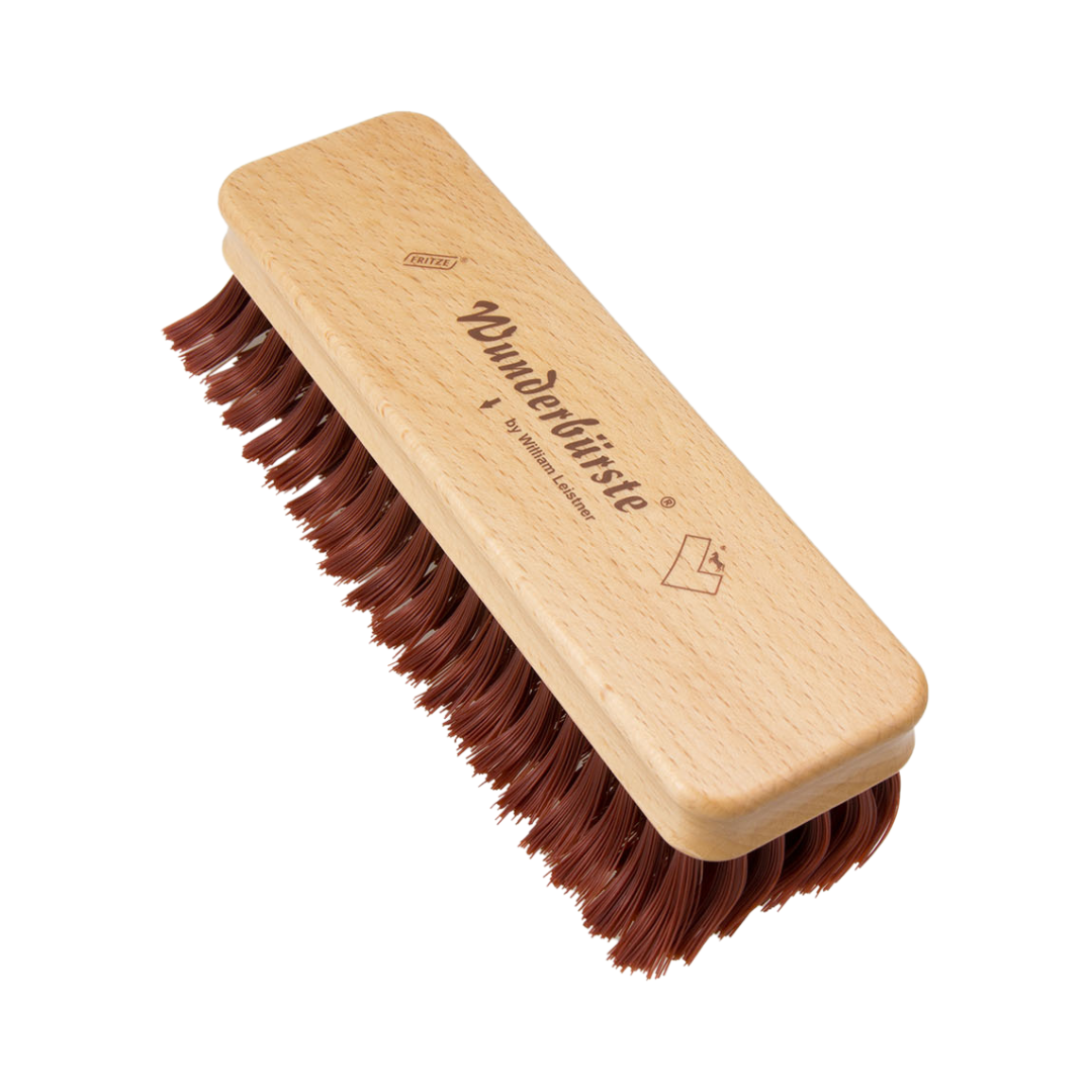 In großen Abständen können die Borsten der Wunderbürste® mit handwarmem Seifenwasser gewaschen werden. Geben Sie ein paar Tropfen Flüssigseife in ein flaches Gefäß mit Wasser. Dann tauchen Sie nur die Borsten ins Wasser. Lassen Sie sie 10-15 Minuten einweichen.