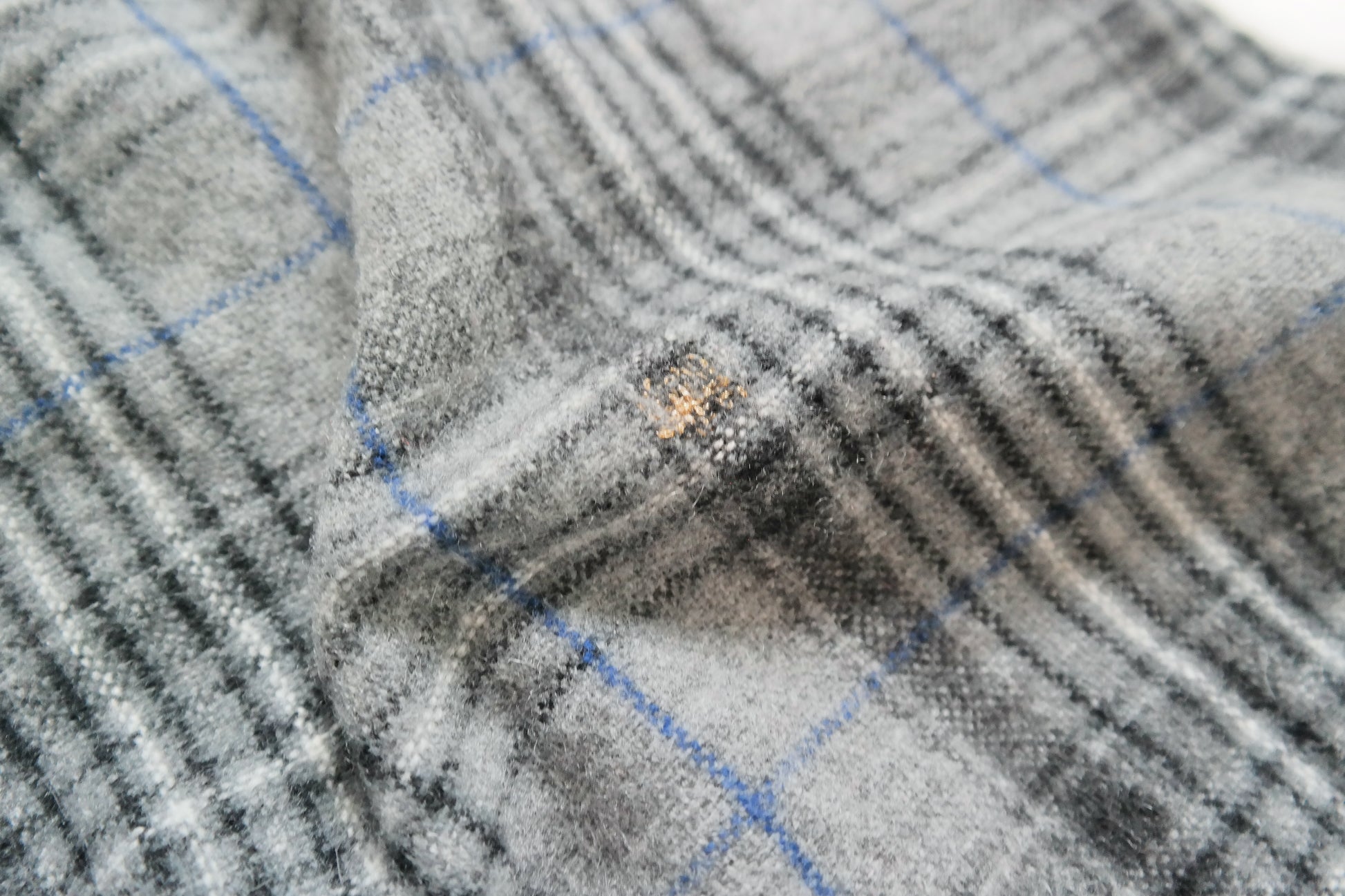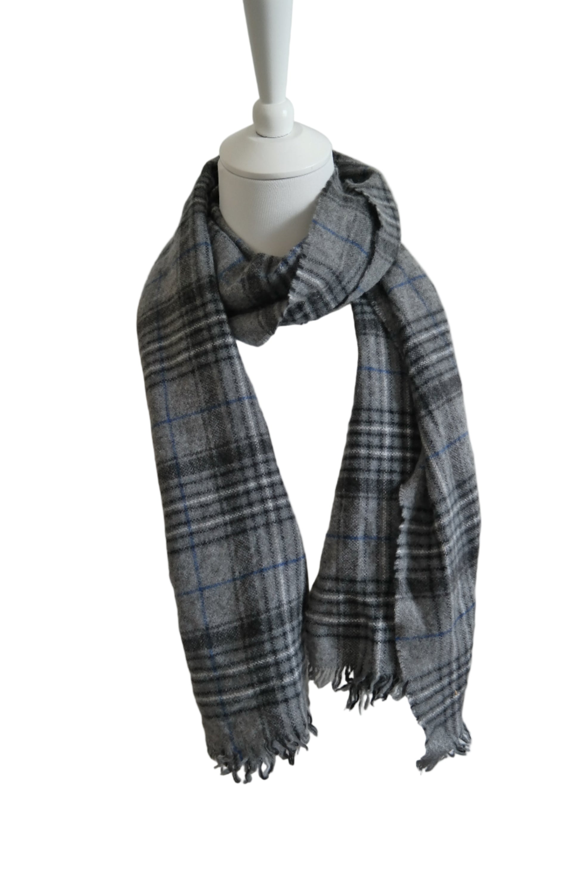 Kaschmir Schal in Grau mit Tartanmuster und goldenen Reparaturen