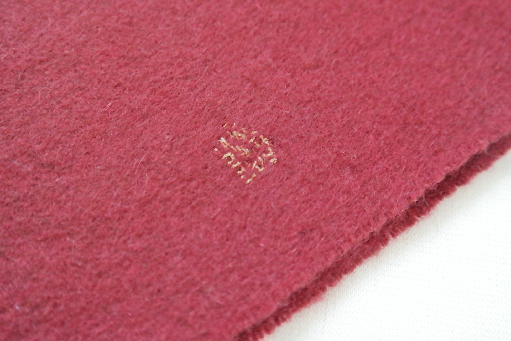 Dieser Second-Hand-Kaschmirschal wurde von Kaschmir Kintsugi sorgfältig aufbereitet und an kleinen Schadstellen mit goldenem Faden repariert.