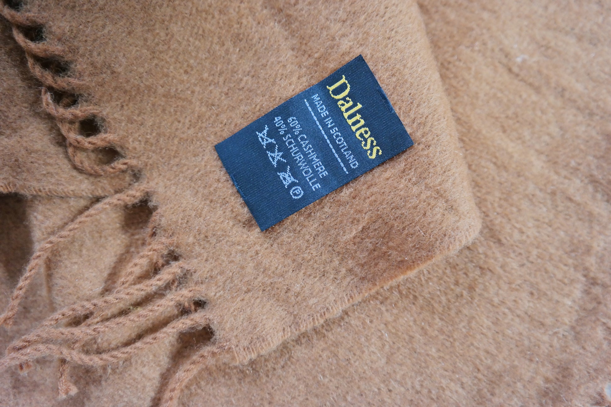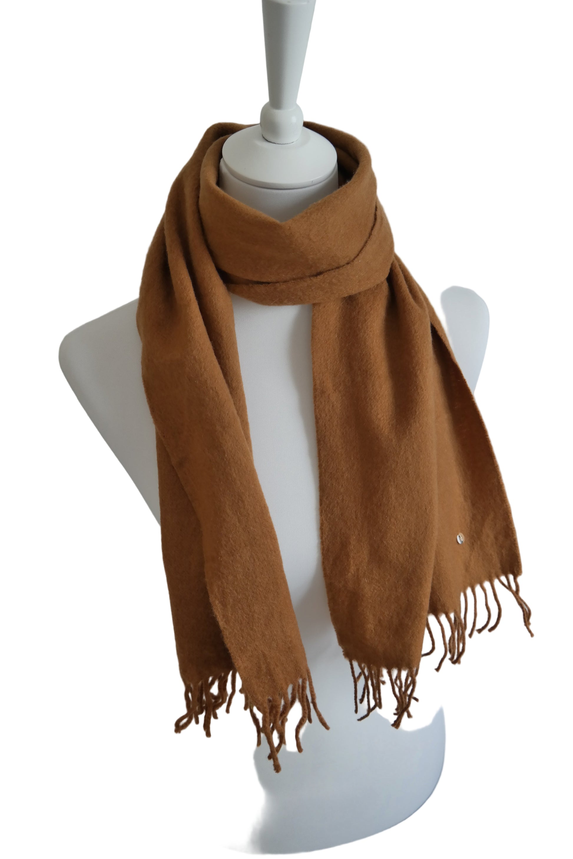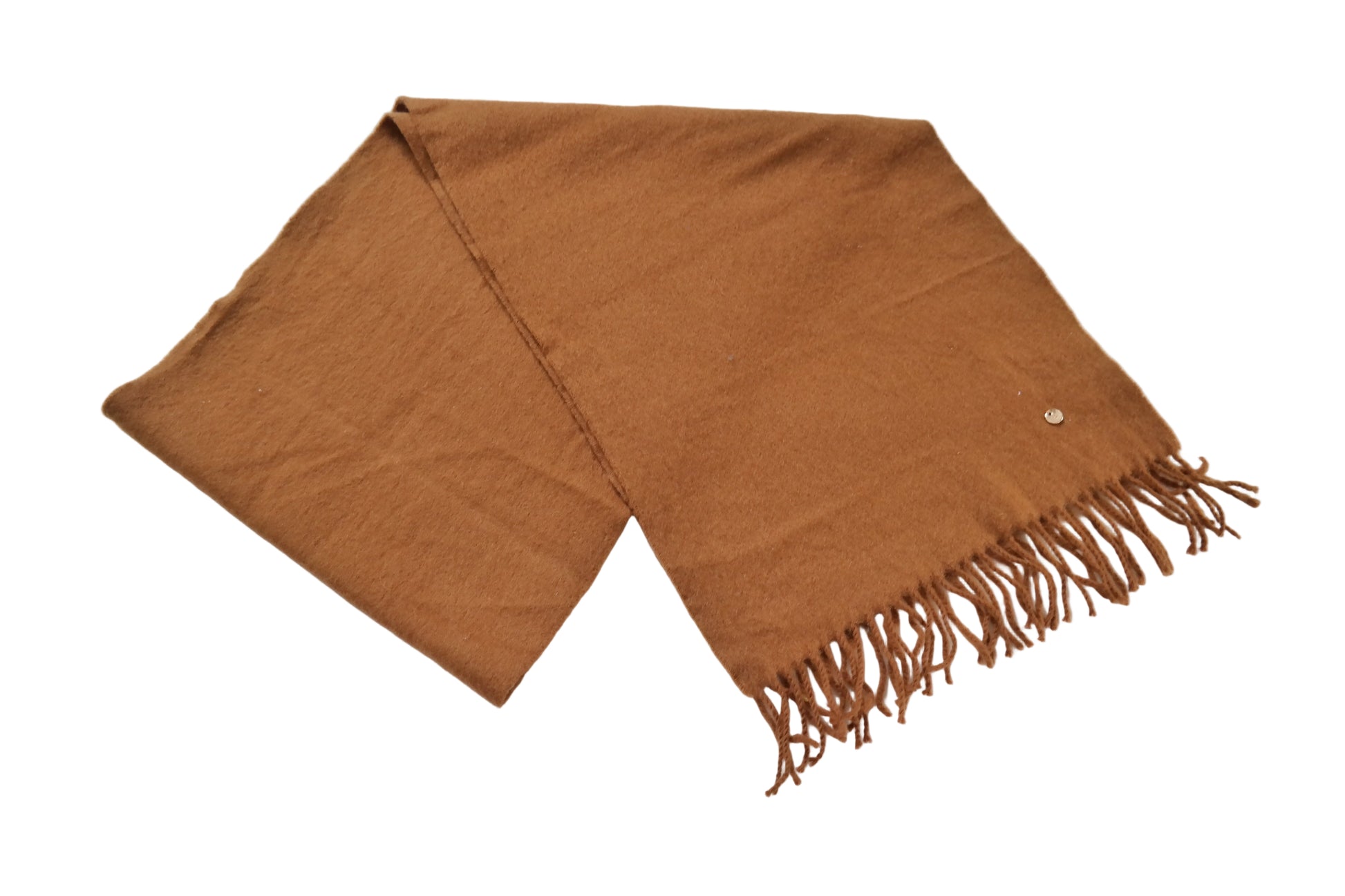 Kaschmir Wolle Schal Cognacbraun mit goldenen Reparaturen