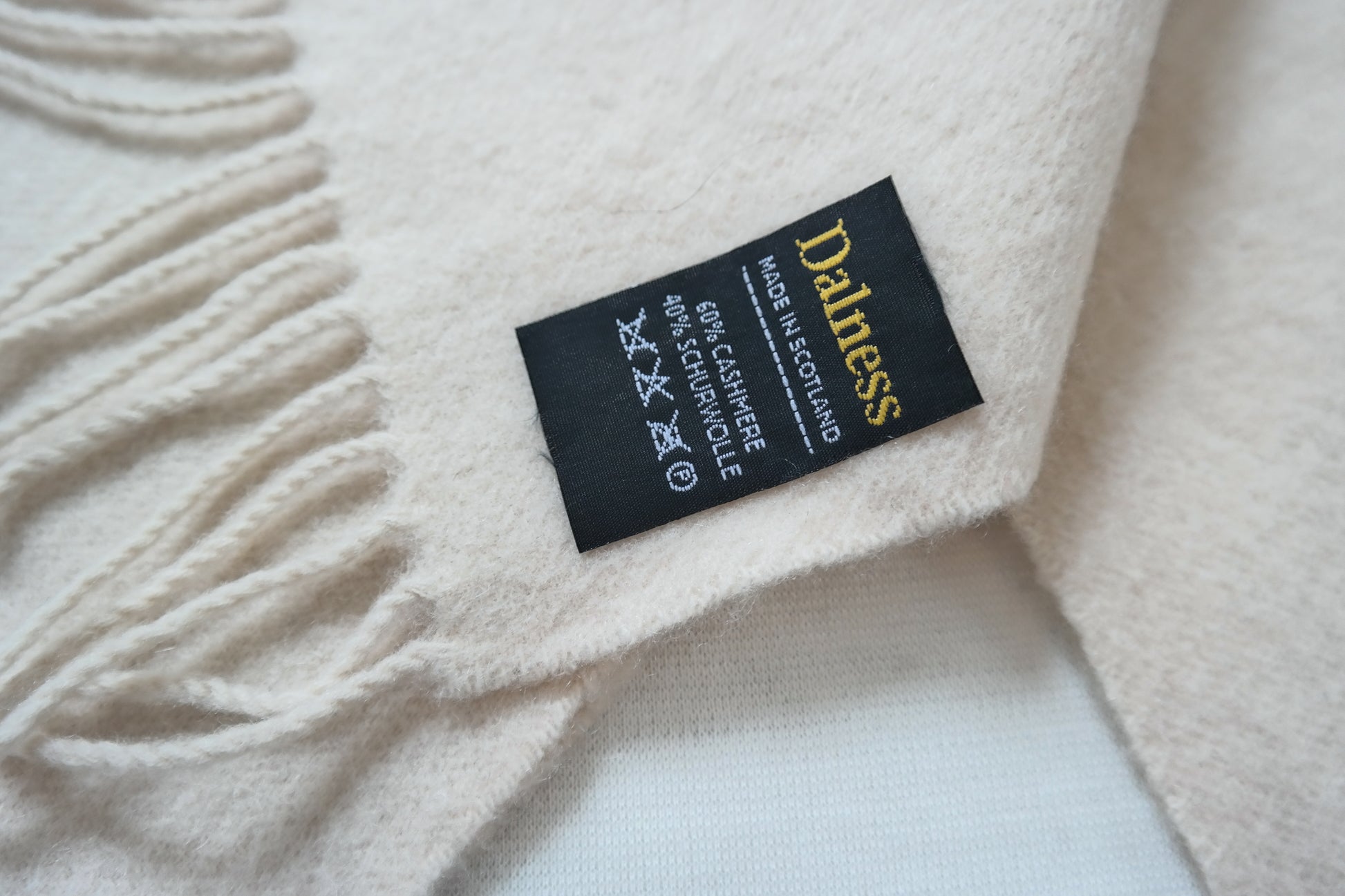 Kaschmir Wolle Schal Cremeweis mit goldenen Reparaturen