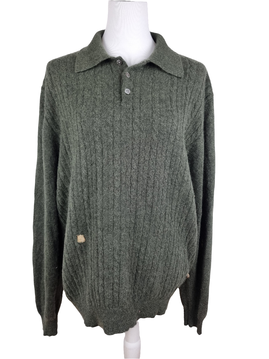 Pullover in Dunkelgrün mit Kragen und Knopfleiste