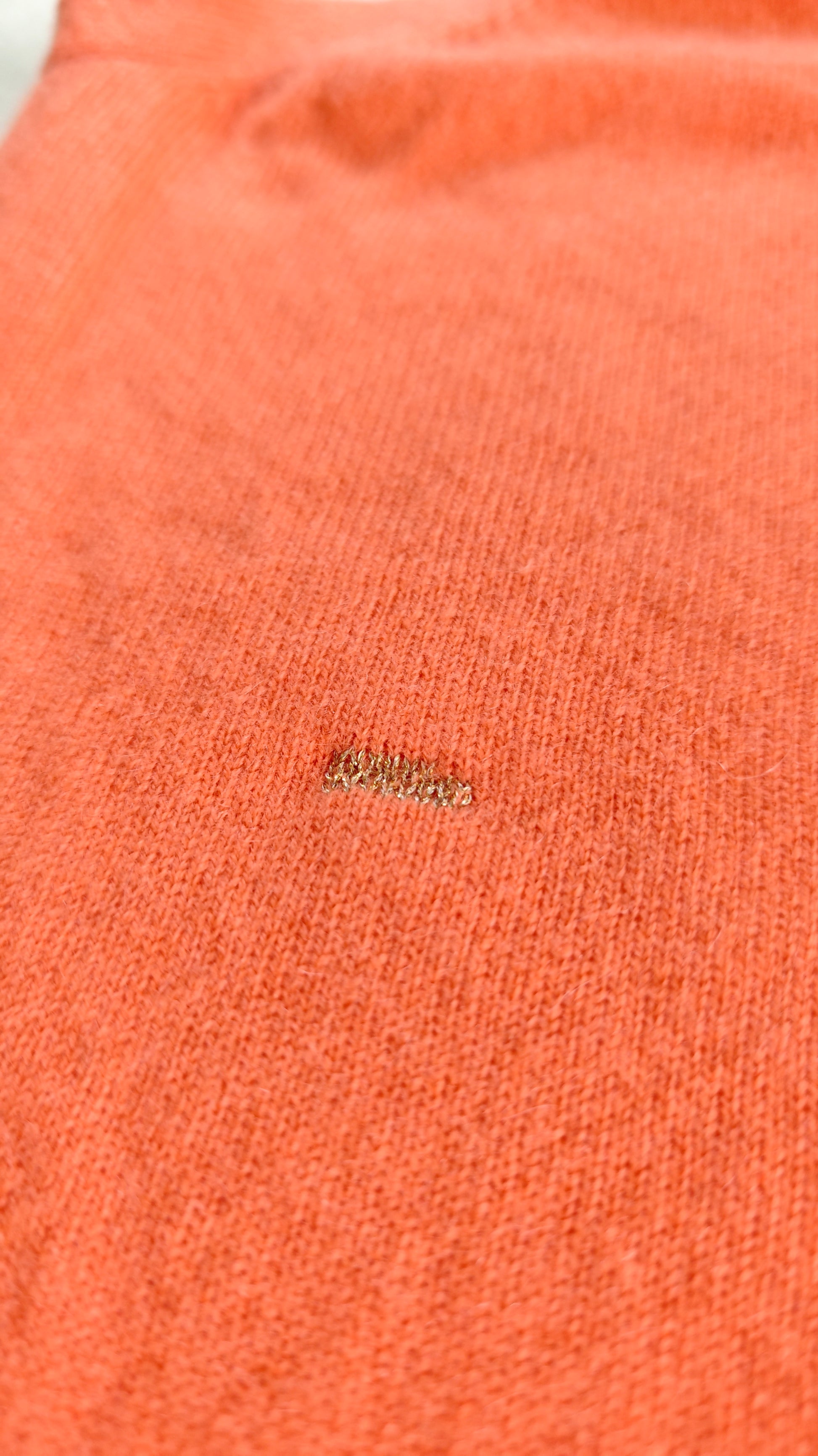 Die Pullover werden gründlich gewaschen, sanft gedämpft und gebürstet, sodass sie ihre ursprüngliche Weichheit und den luxuriösen Kaschmirgriff zurückerhalten. Löcher werden durch goldene Nähte hervorgehoben, die Unvollkommenheiten in echte Highlights verwandeln und jedes Kleidungsstück zu einem absoluten Einzelstück machen.